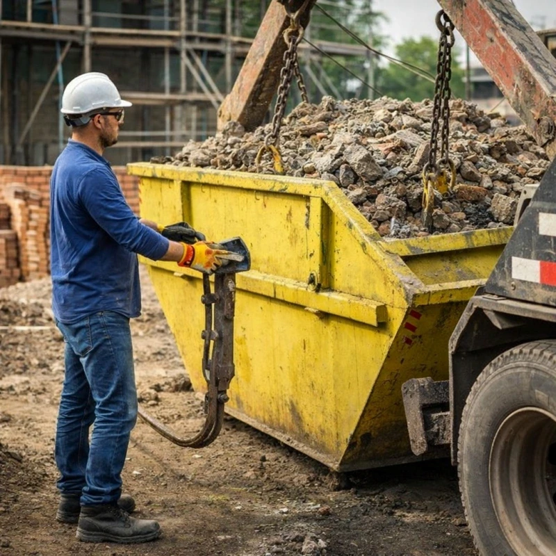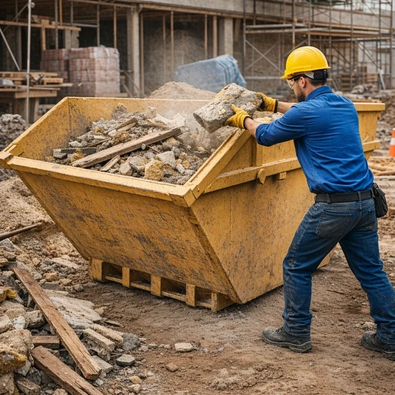 Além disso, manter o entulho armazenado de forma adequada reduz riscos de acidentes no local da obra.