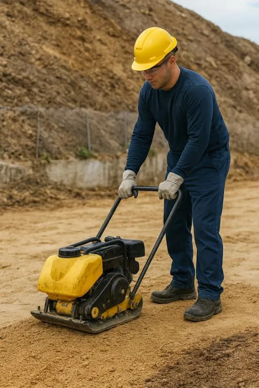 - Compactadores tipo sapo e de placa vibratória para fundações;