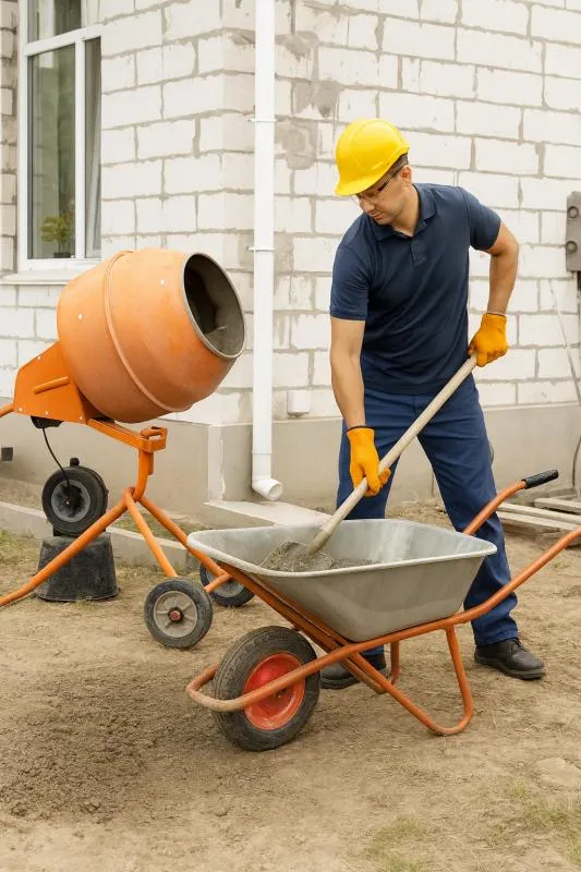 - Betoneiras elétricas e a gasolina, ideais para preparo de concreto;