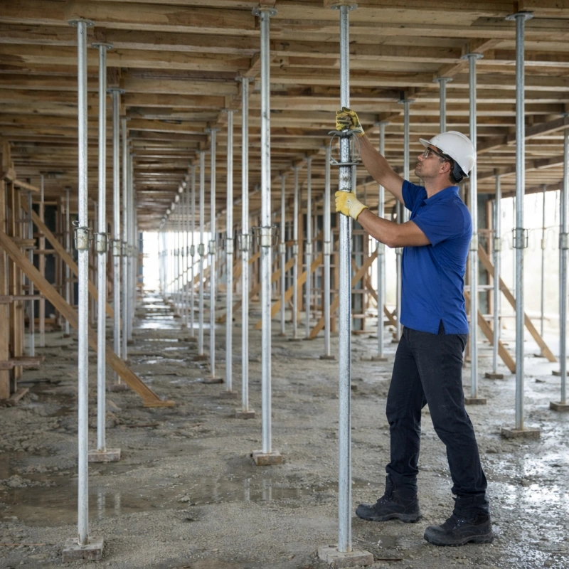 As escoras metálicas são fundamentais para manter a segurança até que o concreto atinja a resistência necessária. Utilizar equipamentos adequados reduz riscos e contribui para o cumprimento do cronograma.