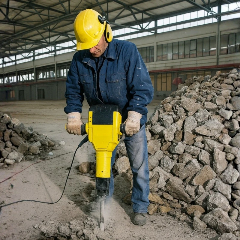 - Martelete demolidor: Equipamento de alta potência para quebra pesada de concreto e asfalto.