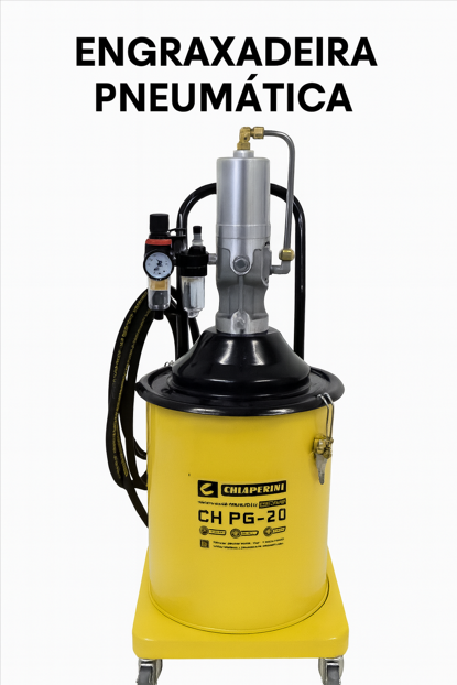 PROPULSORA PNEUMÁTICA CH PG-20 — CHIAPERINI Lubrificação pesada com precisão orbital! A CH PG-20 é uma engraxadeira pneumática profissional de 20 kg, com regulador de pressão (6 a 8 bar) para um jato potente e constante. Com relação de pressão 50:1 e vazão de até 850 g/min, é ideal para...