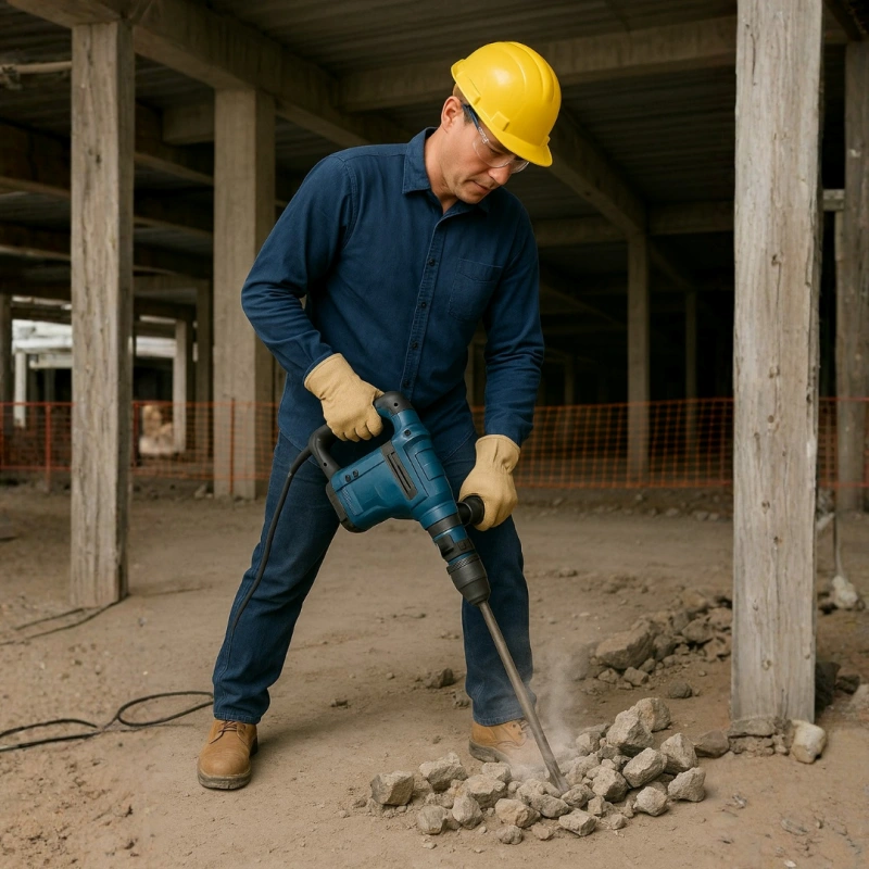 Utilizar o martelete adequado reduz drasticamente o esforço físico da equipe e acelera a execução do trabalho.