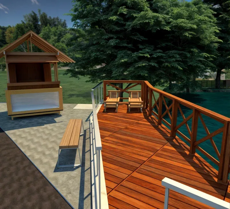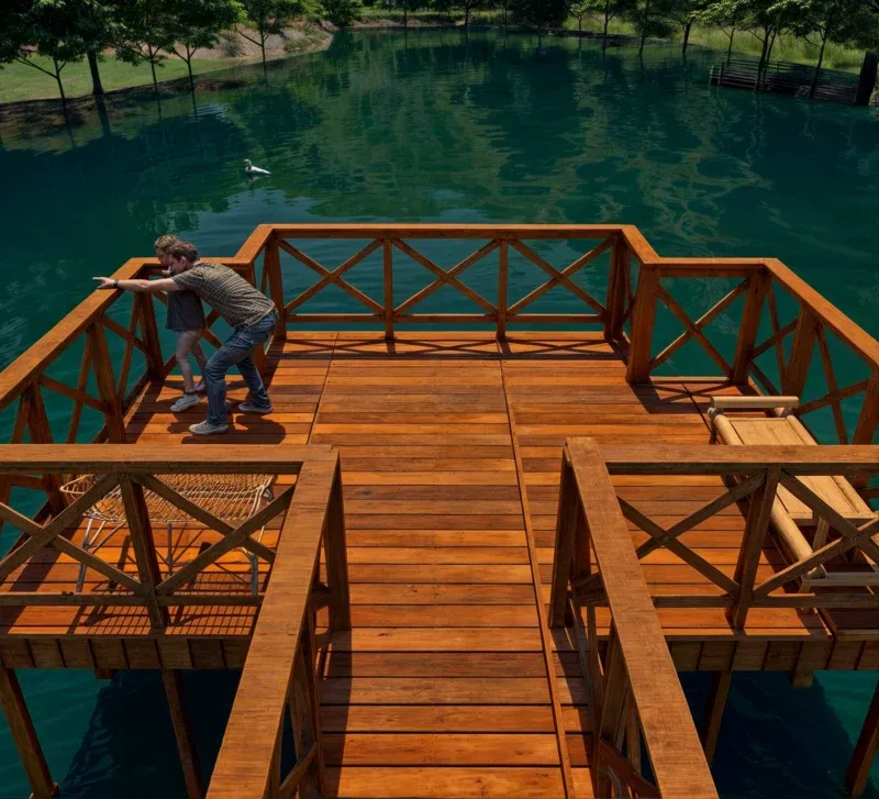 Deck de Madeira com Vista para o Lago: Conforto e Integração com a Natureza