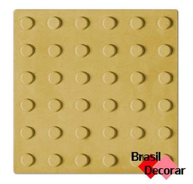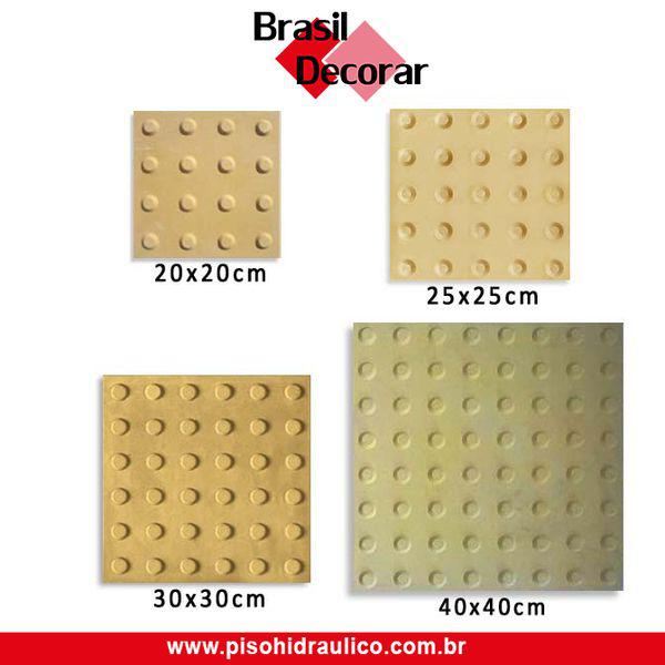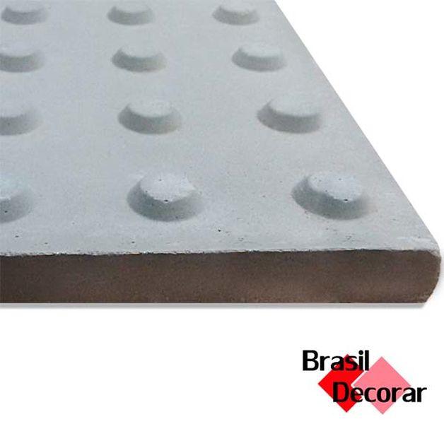 Descrição: O Piso Tátil de Concreto é uma opção de sinalização podotátil para a área externa. Auxilia o deficiente visual e a pessoa de baixa visão a se locomover com maior autonomia por calçadas, parques e pátios. Medidas Disponíveis: 20x20; 25x25; 30x30 e 40x40 cm. Matéria Prima: Cimento e areia Instalação: Argamassa Modelo: Alerta e Direcional Cores de Linha Brasil...