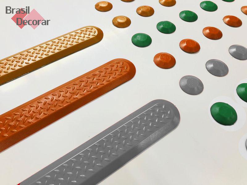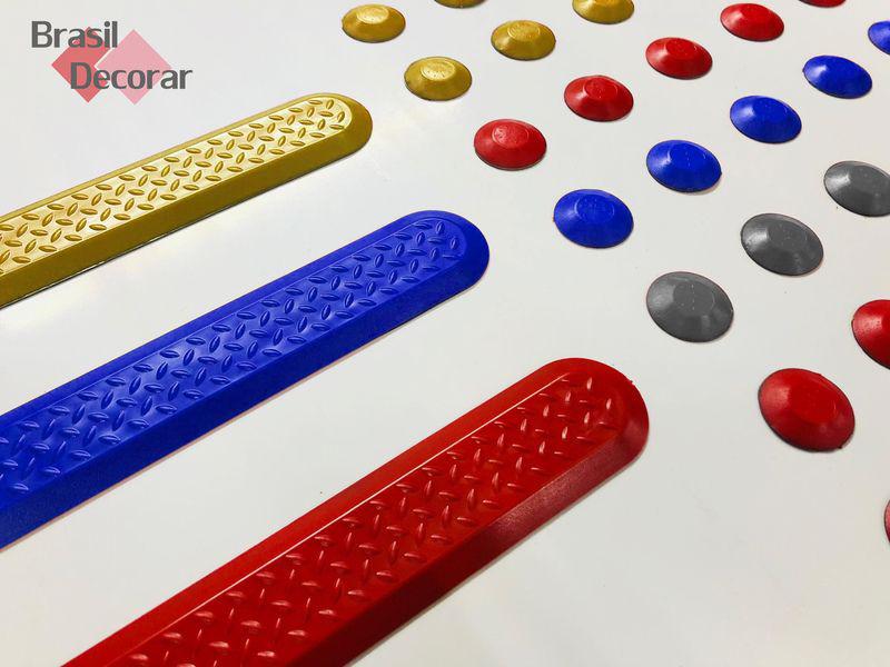 Medidas Alerta: 30 x 30 mm Medida Direcional: 40 x 235 mm Matéria Prima: PVC Cloreto de vinila com aditivo U.V Instalação: Adesivo dupla-face Modelo: Alerta e Direcional - Tipo elemento solto Cores de Linha Brasil Decorar: Azul, Amarelo, Cinza e Preto. Cores Especiais Brasil Decorar: Vermelho, Laranja, Verde, Marrom, Prata e Dourado. Atende Norma: NBR 16537/ 2016
