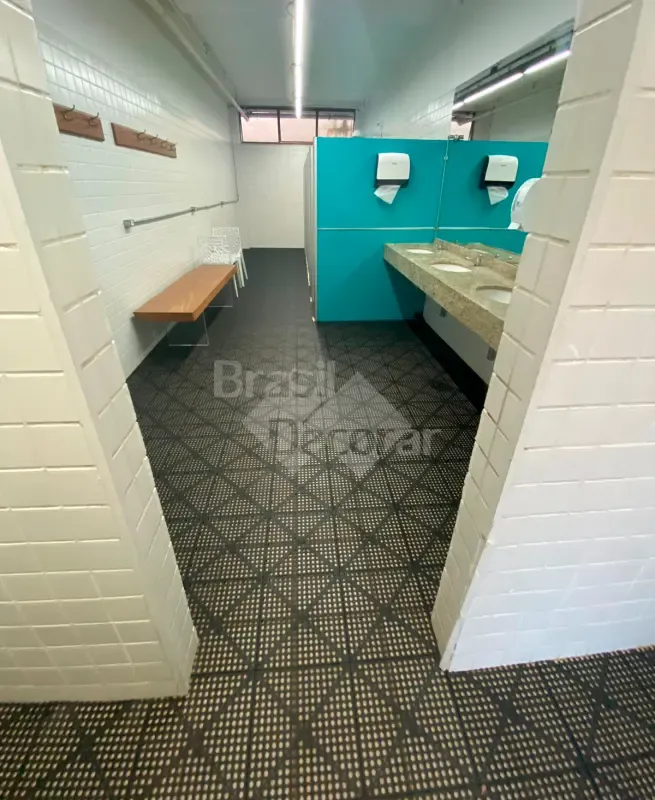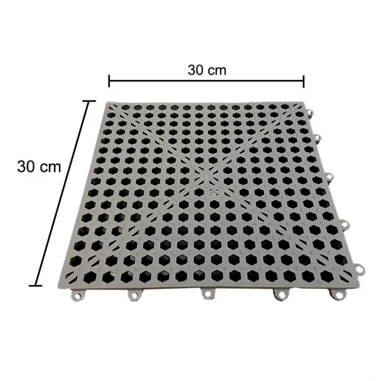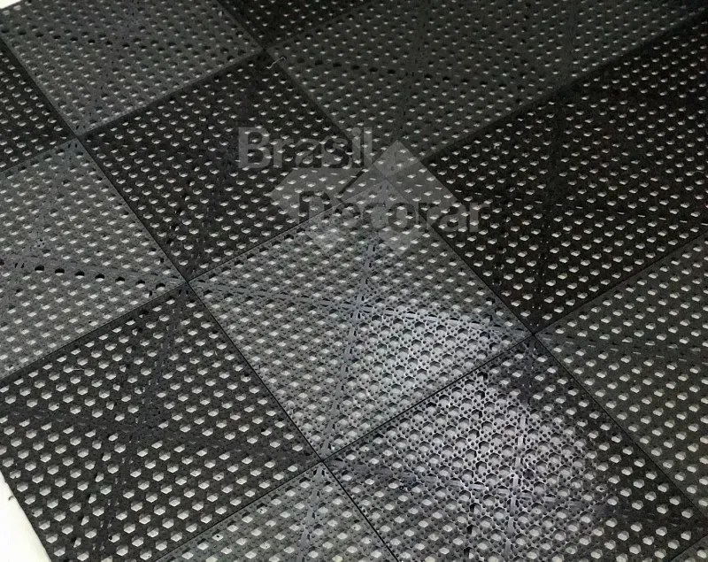 É um Piso Estrado Antiderrapante de Plástico PVC, item de segurança para áreas molhadas. Seu material e formato o tornam leve, resistente, modular, removível, higiênico e confortável. Ideal para banheiros, vestiários e áreas em frente a máquinas, ele previne acidentes e escorregões e é fácil de manter.